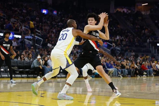 北京时间10月9日,2025-2026赛季NBA季前赛,波特兰开拓者客场对阵金州勇士。中国球员杨瀚森迎来职业生涯NBA季前赛首秀,他替补登场21分钟,贡献4分4篮板1助攻。