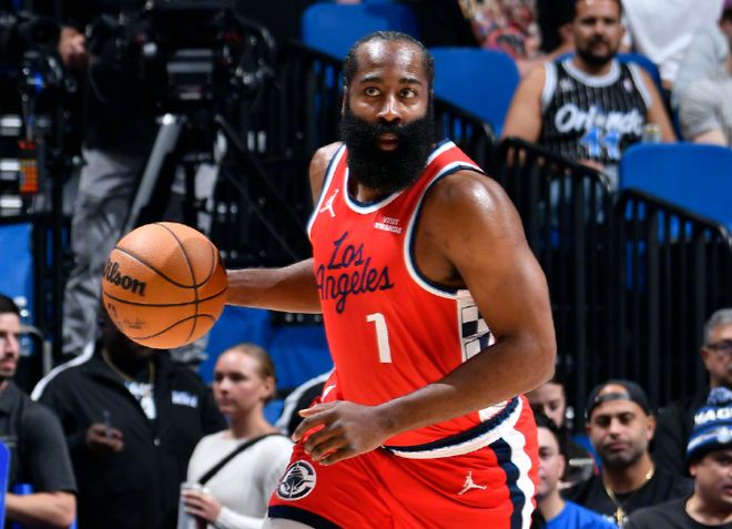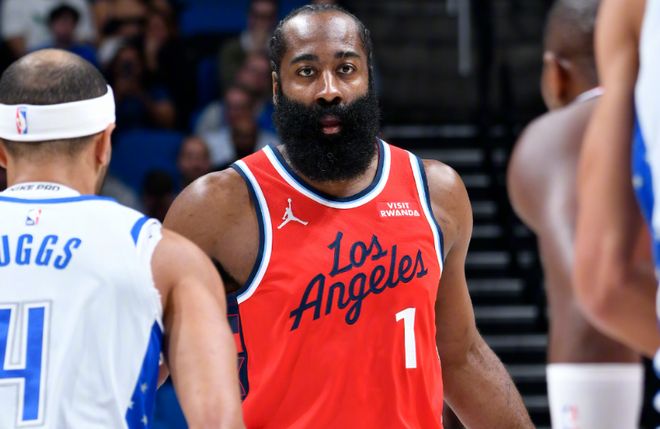 快船:莱昂纳德与比尔等缺席,哈登5记三分31分5篮板8助攻2抢断5失误,祖巴茨14分19篮板。