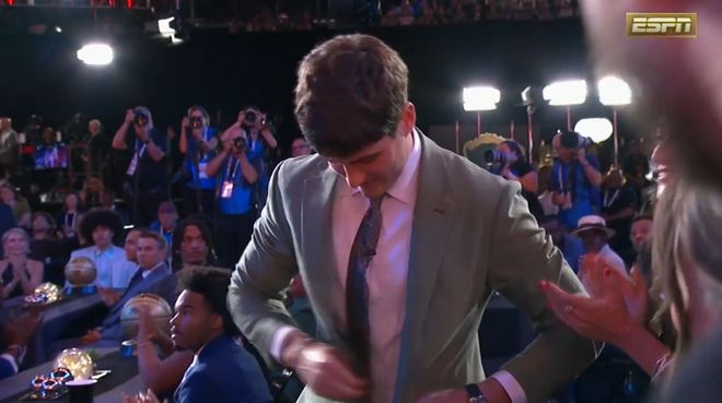 所以在24年的选秀大会,火箭总经理斯通在媒体面前高调宣布:“谢泼德就是这届新秀的最佳球员,如果选不到他,我们将会交易掉手里的探花签”。