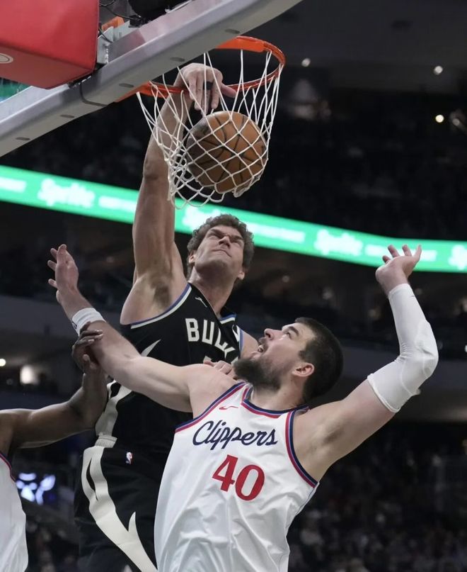 大洛的断崖式下跌早有征兆。上赛季在雄鹿,他尚能首发出战80场,场均13分5篮板1.9盖帽。但季后赛脚步缓慢的缺陷被无限放大,场均时间骤降至14.8分钟。如今在强调速度和换防的快船体系里,他传统的低位技术和护框能力无从发挥,三分准心又跌至35.9%,彻底失去战术价值。