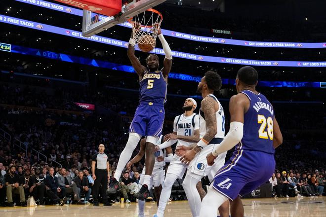 接着是艾顿,打独行侠面对浓眉,艾顿全场出战36分钟,投篮9中8,得到17分8篮板2助攻1抢断2盖帽。据统计,本赛季艾顿对阵字母哥、文班亚马、戈贝尔、萨博尼斯及浓眉时,湖人合计6胜0负,艾顿的个人数据为场均18.8分10.2篮板1.2盖帽,投篮命中率高达恐怖的69%,可以说这赛季的艾顿重新证明了,为什么当年选秀他可以力压东契奇等天才成为状元。本赛季光是里夫斯和东契奇就快把艾顿喂饱了,结果现在又来了一个更会传球的詹姆斯。