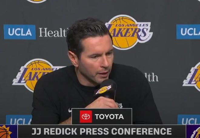 赛后,湖人队主帅JJ-雷迪克出席了新闻发布会,他谈到了本场失利的感受:“如果你不全力以赴对抗对手,你就会暴露弱点。所以,你知道,上半场我们有好几次在防守端都占据人数优势,但对方球员却轻松地从我们身边溜过。我们之前讨论过要和他们拼身体对抗,但在比赛的任何阶段,我们都没有做到这一点。也许可能是连续打了三四场比赛,大家脑子都有些不清醒了。我不知道。我不记得我们讨论过要在防守时守沉退策略。吉莱斯皮在投三分,罗伊斯-奥尼尔也在投三分。我不知道什么原因。”