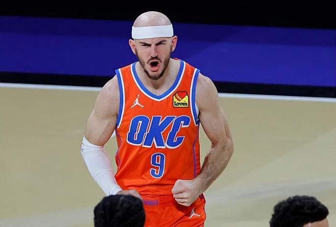 本场比赛中,雷霆虽然最终有些遗憾地输掉了比赛,但是球队的替补外线大闸亚历克斯-卡鲁索(Alex Caruso)的表现其实还是相当不错的。卡鲁索全场出场24分04秒,投篮9中5,三分线外3中1,得到了11分8篮板3助攻3抢断的全面数据,其中还包括了4个前场篮板,还有5次犯规,正负值更是达到了全场最高的+22。卡鲁索在进攻端虽然没有什么太多的球权,但是他还是靠着自己的努力得到了大量的前场篮板,他也通过各种方式拿下了不少分数。不仅如此,卡鲁索也能够在传球和组织方面起到一定的作用。作为球队的外线大闸,卡鲁索在防守端的表现同样是相当突出的,他的防守侵略性实在是太高了,能够给对手制造巨大的威胁。卡鲁索在攻防两端的表现都是值得肯定的,只是球队的整体状态还是差了一些,卡鲁索的努力也没有办法帮助球队扭转局面。